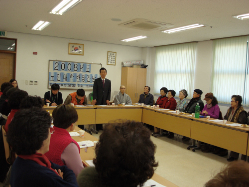 노인대학 반장님들과 함께 간담회를 진행하는 사진입니다.