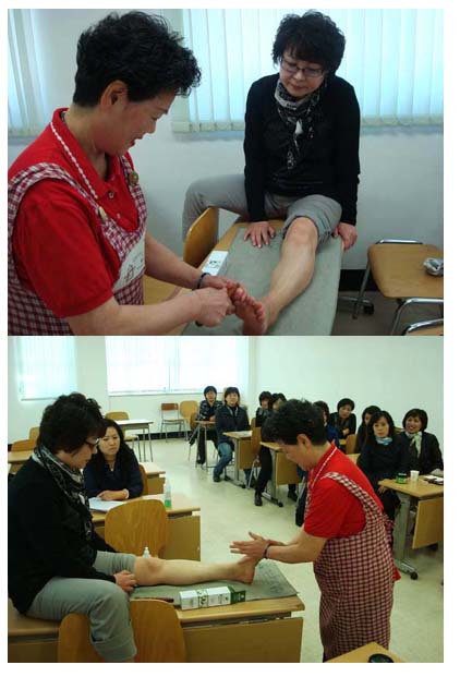 노인돌보미를 대상으로한 노-노강사님의 발마사지 실습교육이