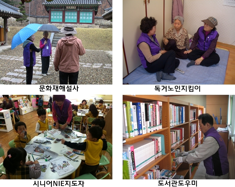 ■ 점검대상 : 8개사업(도서관도우미, 1-3세대 꿈나무지도자, 노-노강사, 문화재해설사, 시니어NIE지도자, 독거노인지킴이, 복지시설도우미, 주거개선사업) 참여자 어르신 347명