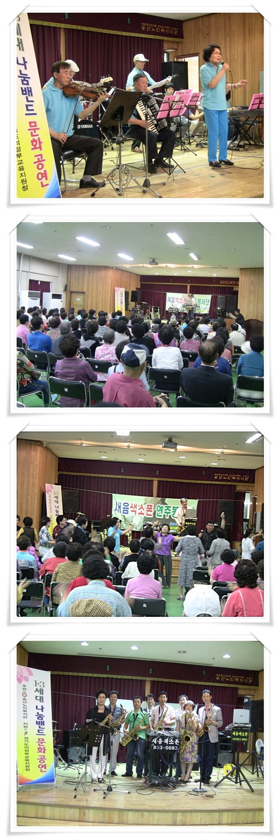 ■ 내 용 : 송산노인복지관 1·3세대나눔밴드단과 새음 색소폰 동호회가 연합하여 복지관어르신들에 신바람 나는 노래를 연주해 드렸습니다. 어르신들 모두 흥겹게 어깨를 들썩이며 즐거운 시간을 보냈습니다.