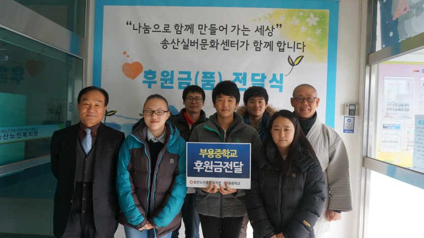 송산노인종합복지관에서는 1월 6일(월) 의정부시 부용중학교에서 복지관을 직접방문하여 후원금을 전달하는 자리가 마련되었습니다.