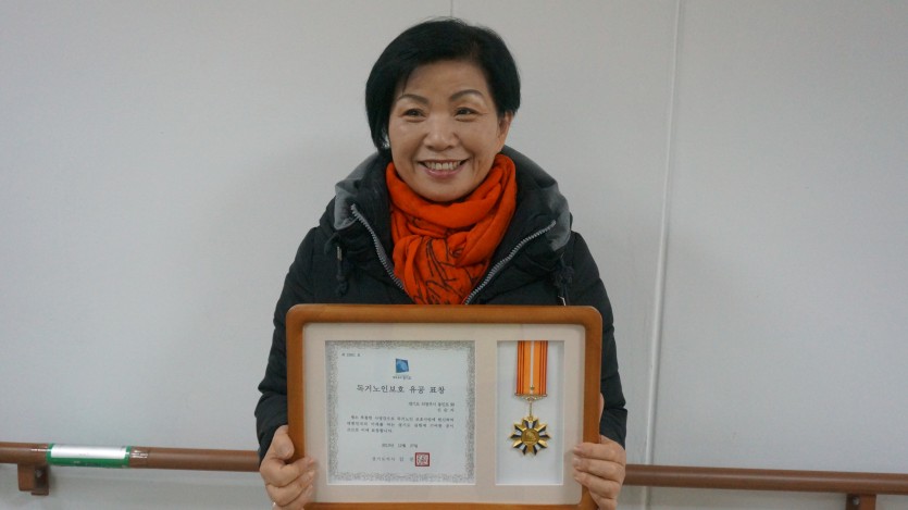 노인돌봄기본서비스사업 신순자 독거노인생활관리사가 독거노인보호 유공자 표창을 수여하였습니다.