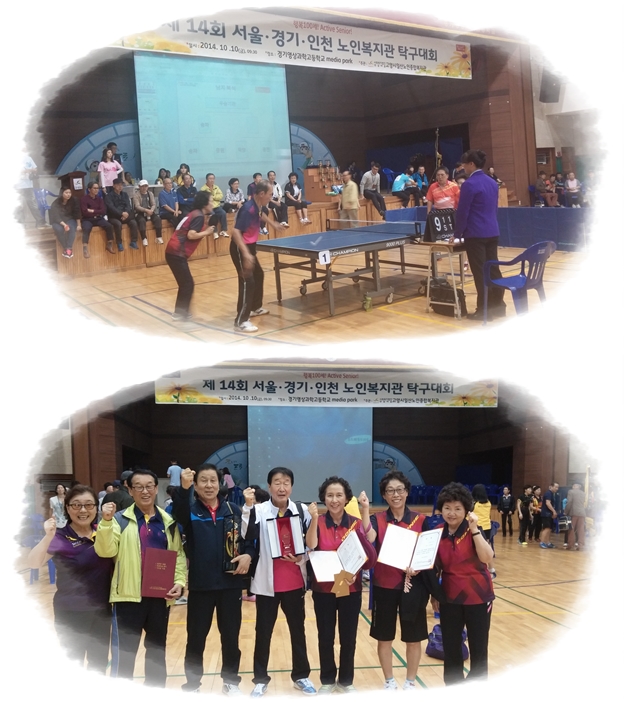 송산노인종합복지관에서는 지난 10일 개최한 제 14회 서울`경기`인천 노인복지관 탁구대회에서 남자 단식 우승,