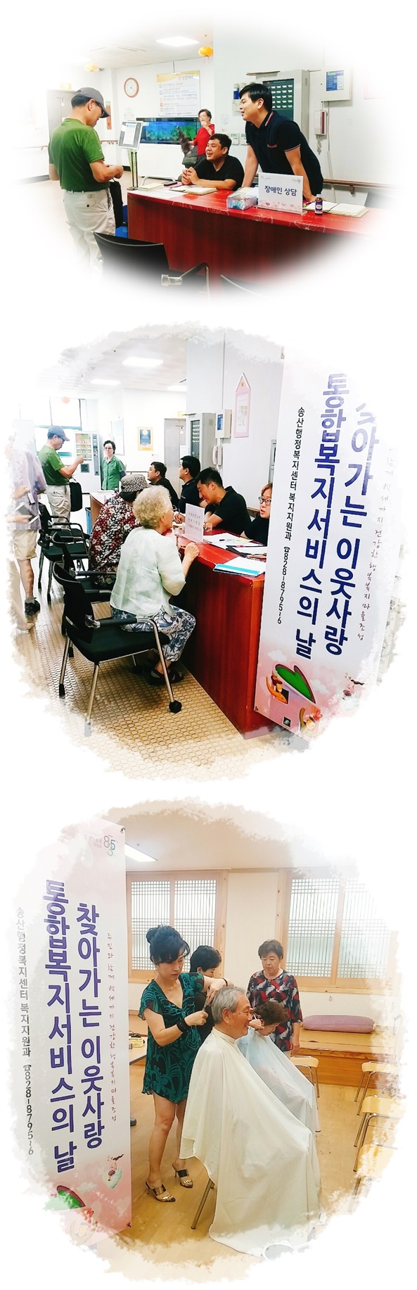 송산노인종합복지관에서는 매달 송산행정복지센터, 세움공동체와 함께 "찾아가는 이웃사랑 통합복지서비스의 날"을 통해 맞춤형 복지서비스를 제공하고 있습니다. 이번 달은 송산노인종합복지관을 방문하는 어르신을 대상으로 서비스가 진행되었습니다.