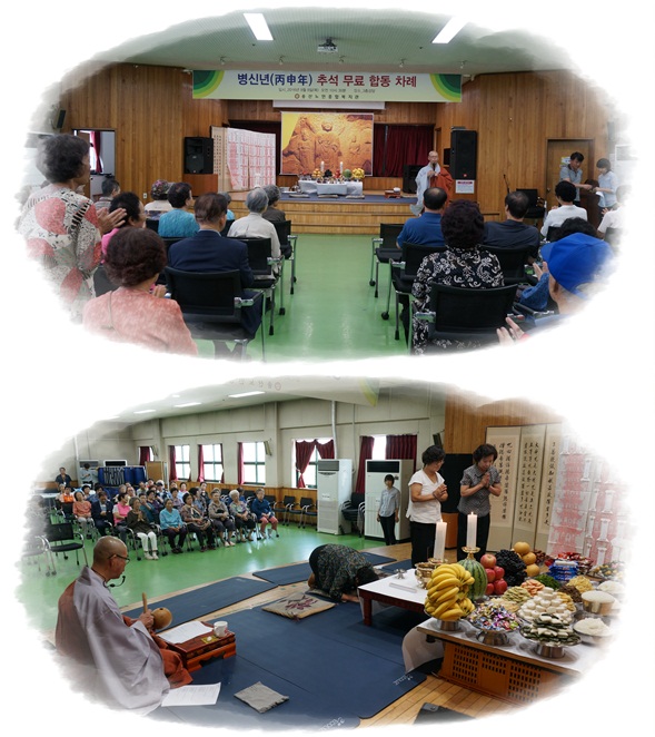 이번 추석 무료합동차례는 법일스님의 집전으로 31명의 제주와 복지관 어르신, 지역사회 주민 등 100여명이 참석한 가운데 진행되었습니다.