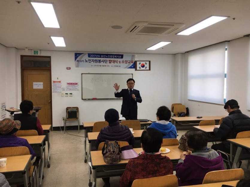 의정부시 자원봉사센터와 연계하여 노인자원봉사단 어르신들 대상으로 자원봉사 활동 전 기본소양교육 실시