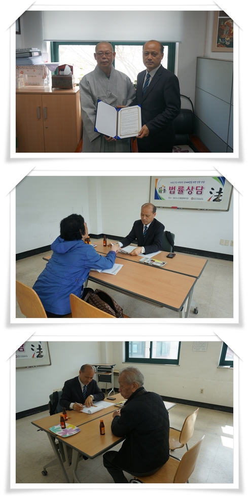 4월 12일 복지관에서 이주형 변호사와 법률상담에 관한 MOU를 체결하고 복지관 이용어르신들을 위한 법률상담을 진행하였습니다.
