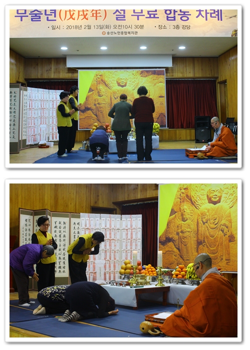이번 설 무료합동차례는 법일스님의 집전으로 33명의 제주와 복지관 어르신, 지역사회 주민 등 약 100여명이 참석한 가운데 진행되었습니다.