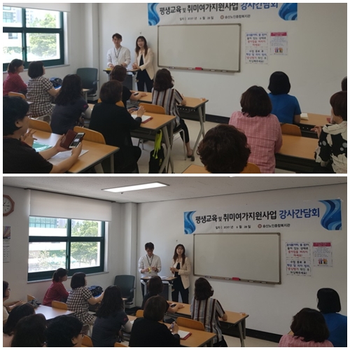 송산노인종합복지관은 평생교육 및 취미여가지원사업 강사님들을 모시고 하반기 강사간담회를 실시하였습니다. 이번 간담회는 강사님들의 의견을 수렴하여, 발전적이고 체계적인 평생교육 및 취미여가지원사업을 운영하기 위하여 마련된 자리로, 바쁜 시간에도 불구하고 많은 강사님들이 참석해주셨습니다.