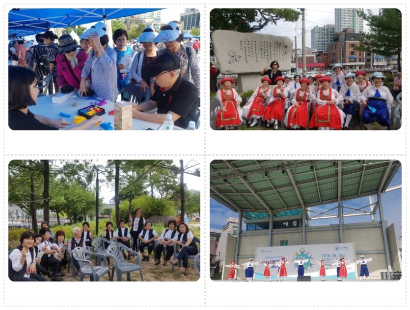 9월 18일 치매안심센터가 주최한 “치매극복의 날”행사에 복지관 노인대학 포크댄스반, 귀락난타팀이 공연을 하였습니다. 열정넘치는 어르신들의 공연으로 다른 어르신들 모두 활기차고 줄거운 시간이 되었습니다. 또한 복지관에서도 홍보부스를 운영하여 노인복지관 홍보, 치매예방교구를 통한 체험프로그램도 진행하여 어르신들에게 치매예방의 중요성에 대해 알릴수 있었습니다.