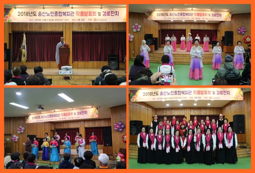 송산노인종합복지관은 12월 21일(금) 오전 10시부터 작품발표회 및 경로잔치를 실시하였습니다.