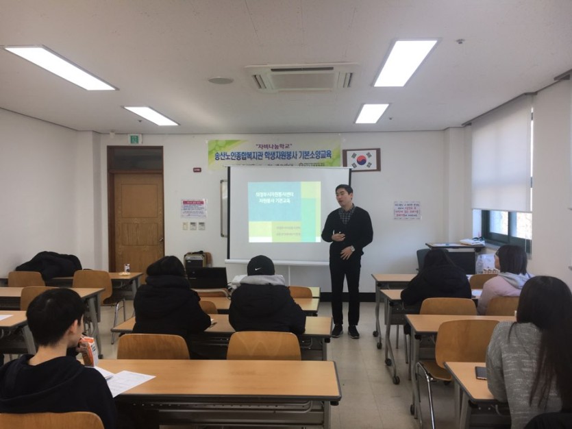총 20명의 중, 고등학생 대상으로 주간보호센터, 사무보조, 경로식당, 송산노인종합복지관 내 청소 등을 2주동안 실시하였다.