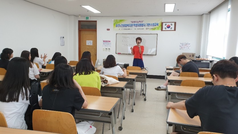 총 28명의 중, 고등학교 학생들이 07.24.(수) ~ 08.07.(수) 2주동안 송산노인종합복지관에서 주간보호센터, 경로식당, 기관청소, 사무보조 등 다양한 자원봉사 활동을 하였음.