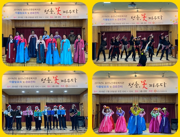 송산노인종합복지관은 12월 20일(금) 오전 10시부터 작품발표회 및 경로잔치를 실시하였습니다.