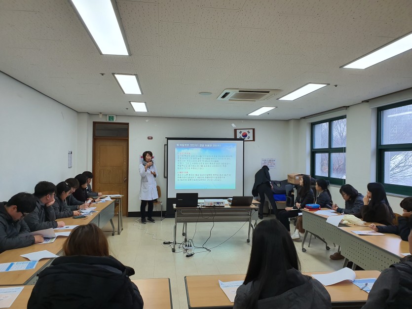 현재 세계적으로 유행하고 있는 신종 코로나바이러스(우한폐렴)에 대한 정의, 감염경로, 감염증상, 치료방법, 예방수칙에 대해 직원들 대상으로 교육을 실시하였음.