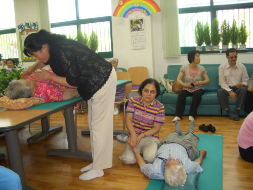 시각장애인 분들께서 송산노인복지센터 어르신들께 정성스레 안마를 해 드리는 모습입니다. ^^