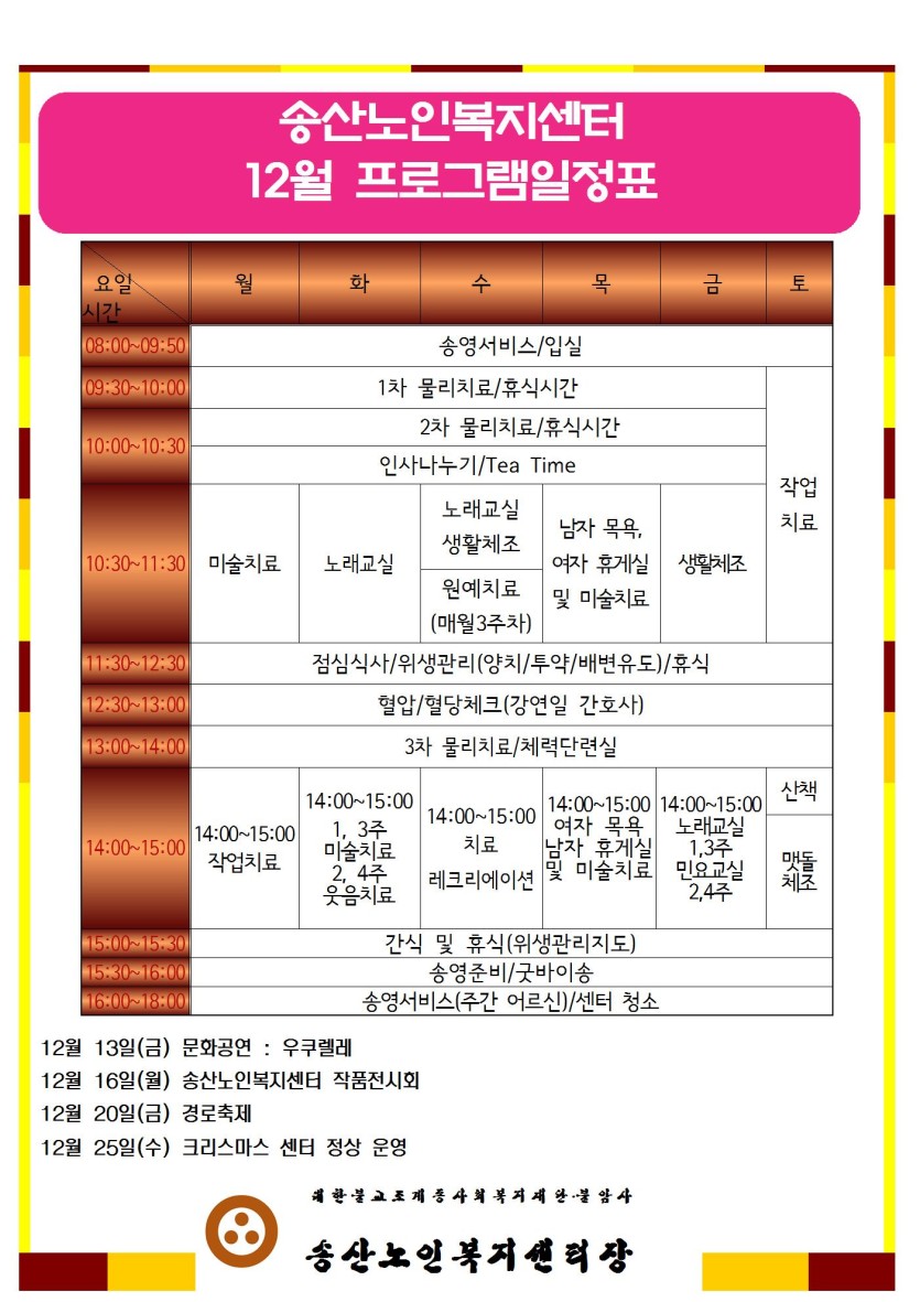 송산노인복지센터 12월 프로그램 일정표 안내
