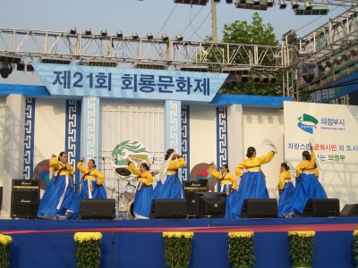 제 21회 회룡문화제에 우리 복지회관 공연자원봉사대 포크댄스, 한국고전무용, 실버밴드 팀이 참가하여