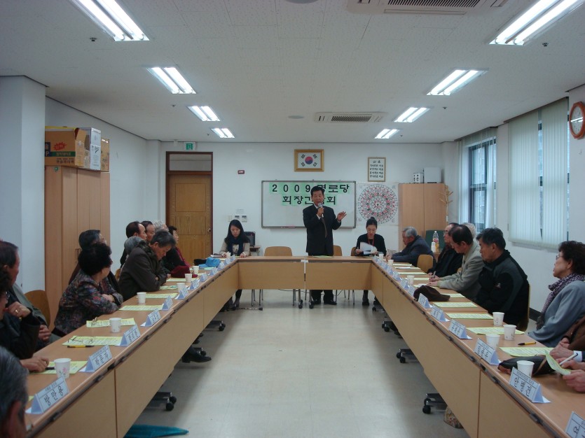 11월 25일 2009년 경로당활성화사업의 평가와 적극적인 프로그램 참여와 협조를 위해 총 30개소의 회장님들을 모시고 경로당 회장 간담회를 개최하였습니다.