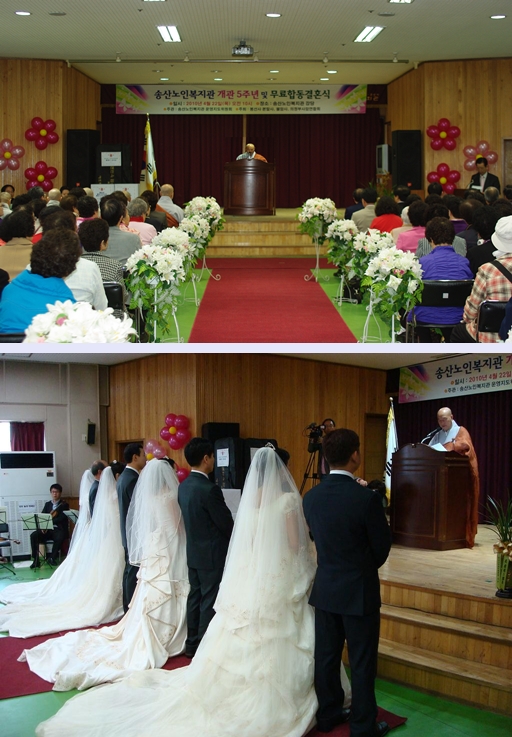 송산노인복지관 개관 5주년을 맞이하여 개관식 및 합동결혼식을 거행하였습니다.
