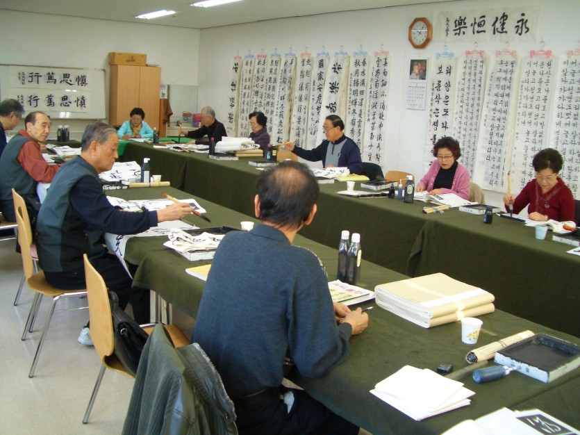 지난 작품전시회 때 엄청난 기량을 선보여주셨던 고급한문서예반 수업입니다..