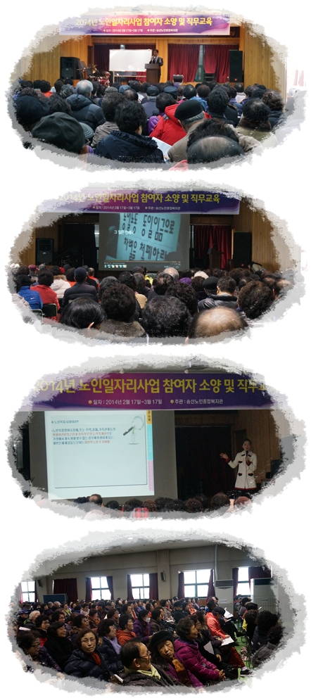 송산노인종합복지관에서는 2014년도 노인일자리사업 참여자를 대상으로 2월 17일 부터 2월 21일 까지 소양교육을 실시하였습니다.