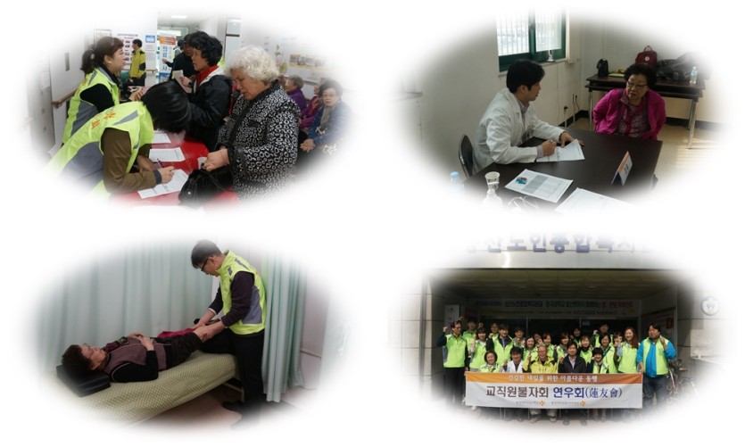 송산노인종합복지관에서는 동국대학교 일산병원 연우회와 함께 지난해에 이어 올해도 무료 양·한방 진료를 실시하였습니다. 약 100명의 저소득 어르신께서 무료진료를 받으셨으며, 자신의 건강상태를 확인할 수 있는 소중한 시간이 되었습니다. 또한 송산노인종합복지관 운영위원장이신 일면큰스님도 함께 참석하셔 어르신 및 관계자들을 격려해주셨습니다. 앞으로 송산노인종합복지관에서는 어르신들의 건강한 노후 생활을 위하여 더욱 더 노력하도록 하겠습니다.