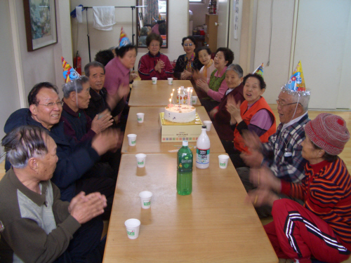 민락주공2단지A 경로당을 이용하시는 어르신들 중 1~3월 생신을 맞이하신 분들을 위하여 케익 등을 준비하여 생신잔치를 열어 드렸습니다.