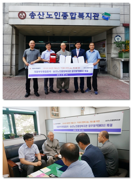 6월 29일 송산노인종합복지관은 의정부우편집중국과 우체국행복나눔소원성취 사업진행을 위한 MOU를 체결하였습니다.