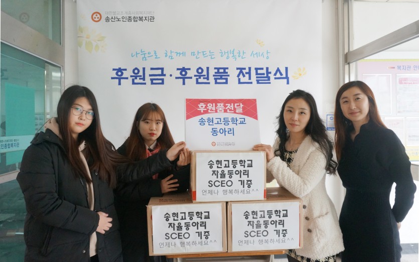 송현고등학교 자유동아리 SCEO는 동아리 상금으로 독거어르신을 위해 라면을 전달하였습니다.