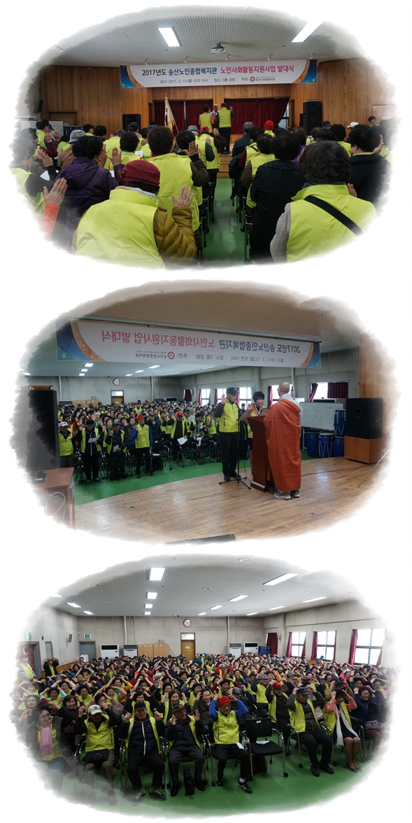 송산노인종합복지관 노인사회활동지원사업에서는 2017년도 노인사회활동지원사업 참여자를 대상으로 발대식을 실시하였습니다.