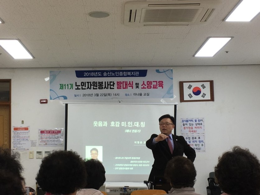 총 40명 중 30명의 어르신들이 참석하였고 기본소양교육 및 건강웃음 강의 와 함께 해 어르신들이 호응도가 높았다.