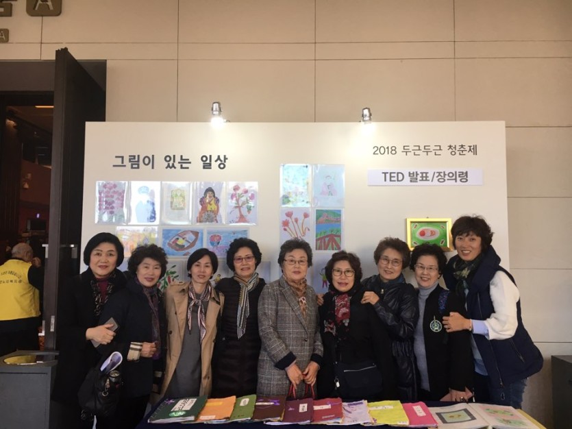 2018년 문화예술교육지원사업 미술 프로그램이 두근두근 청춘제에 참여하였습니다. 어르신들이 그 동안 미술 시간에 직접 만들고 배운 그림과, 드로잉북을 전시하였습니다.
