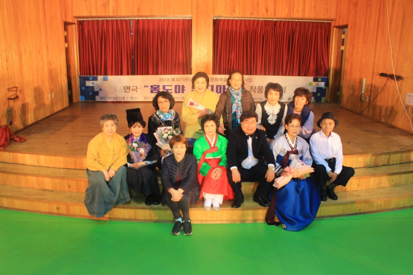 2018년 11월21일 오후 2시 3층 대강당에서 한국노인종합복지관협회 일환으로 문화예술교육지원사업 연극 "홍도야 우지마라" 작품발표회를 실시하였다.