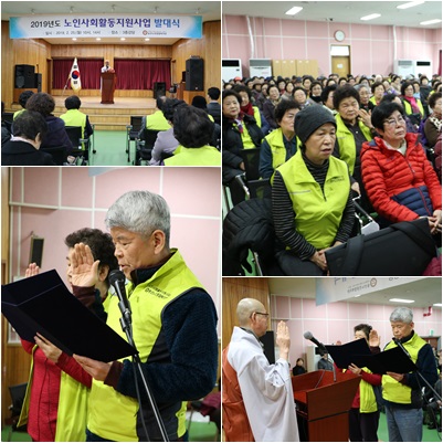 송산노인종합복지관은 2019년도 노인사회활동지원사업 참여자 441명을 대상으로 발대식을 실시하였습니다.