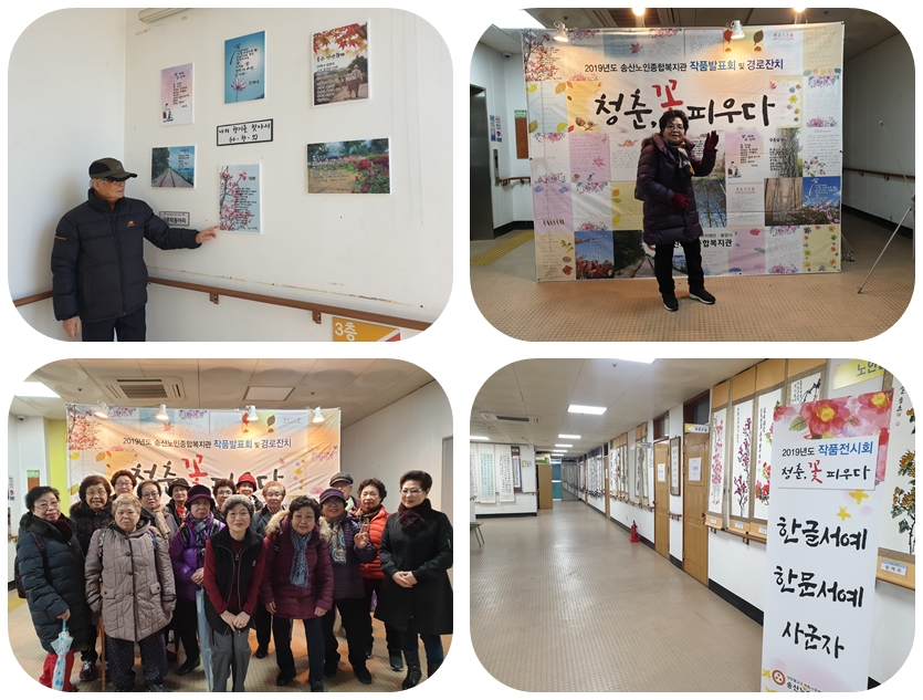 송산노인종합복지관은 12월 16일부터 20일까지 한글서예, 한문서예, 사군자, 시문학감상, 성인문해 프로그램 작품과 송산노인복지센터 작품전시회를 실시, 다양한 볼거리를 제공하였습니다.