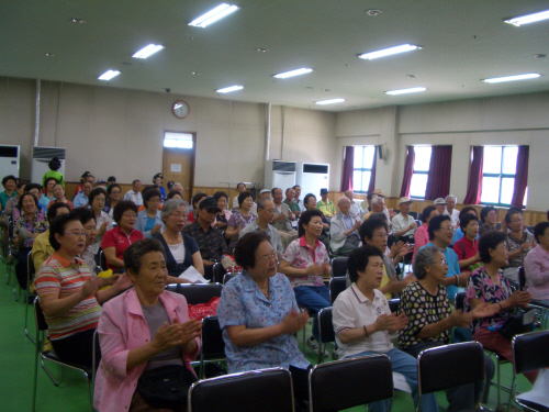 약 100명의 어르신들께서 강당에 모이셔서 드림페스티벌 공연을 관람하셨습니다. ^^