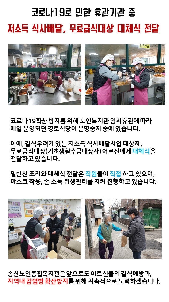 복지관 휴관에 따른 무료급식, 저소득 식사배달 대체식 전달