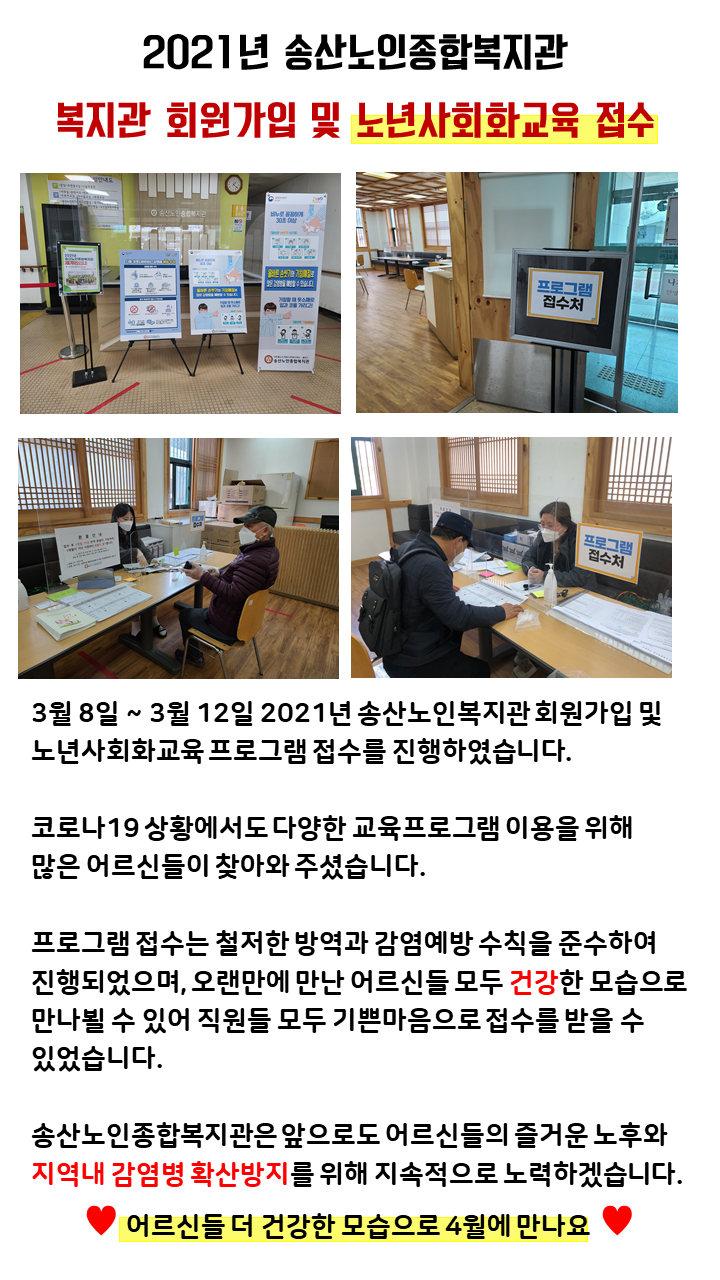 2021년 송산노인종합복지관 노년사회화교육 프로그램 접수