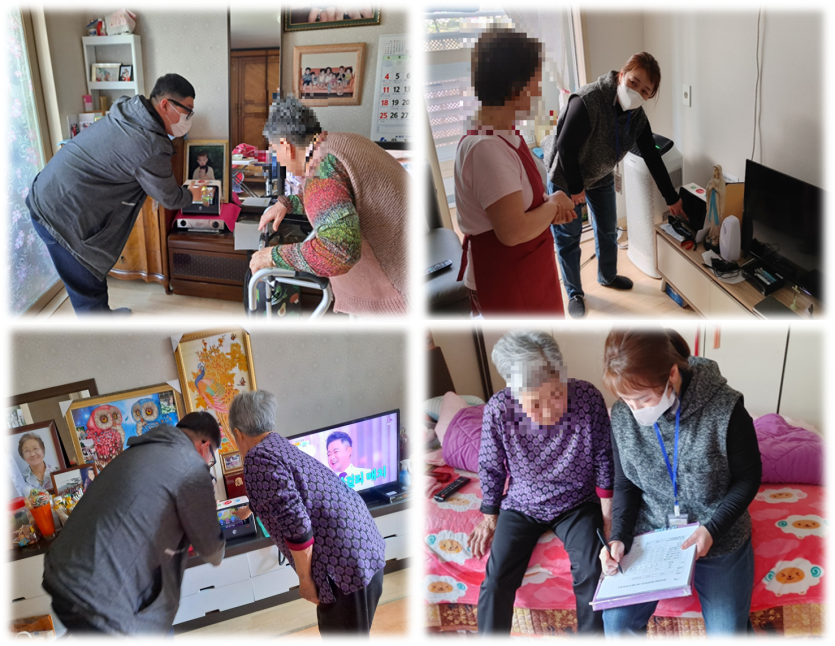 어르신 가정에 설치된 댁내장비의 점검과 장비사용법에 대한 교육을 실시하였습니다.