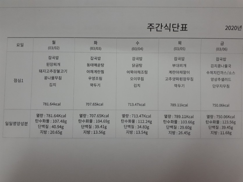 송산노인복지센터 3월 1주 이용자 식단표 수정 게시
